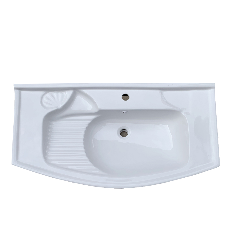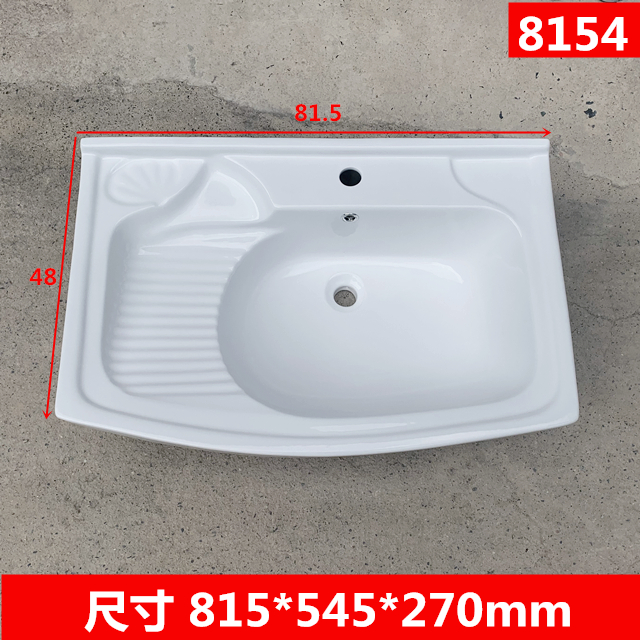 Powder room old-fashioned large belly basin bathroom cabinet basin semi-embedded ceramic laundry tub with washboard deepened laundry pool large
