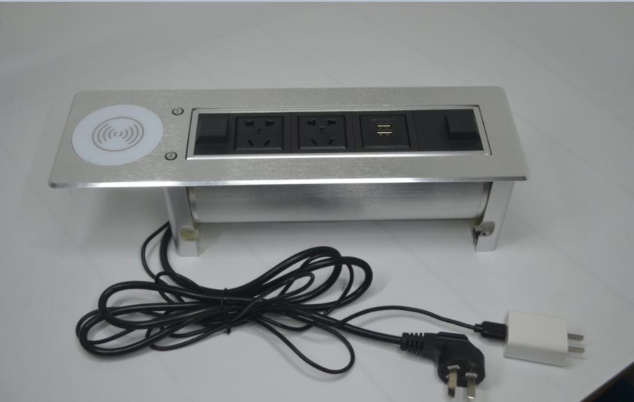 Electric flip desktop socket Automatic rotating table top row plug power supply Multimedia junction box USB wireless charging