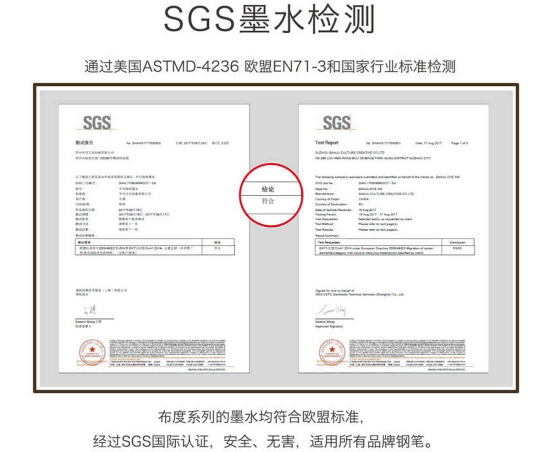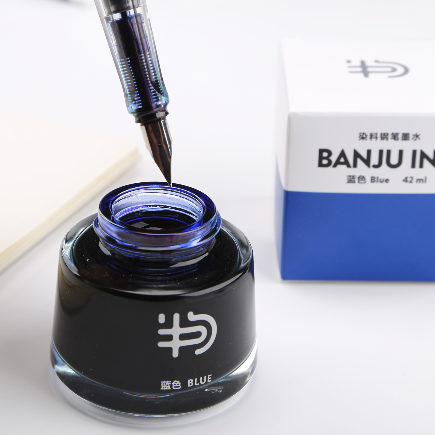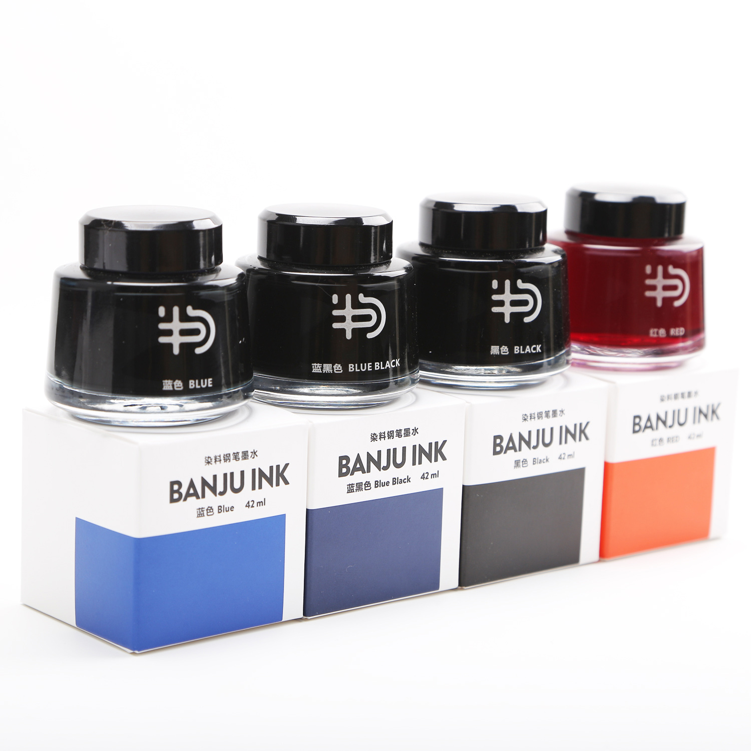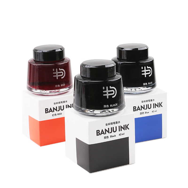 Half sentence BANJU cloth series 42ML large-capacity pen ink black dye type non-carbon students with blue and black ink calligraphy practice calligraphy blue non-blocking pen quick-drying red ink teacher