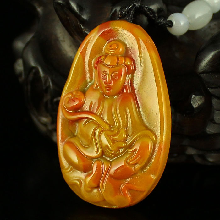One price natural Warring States red agate pendant Guanyin pendant certificate