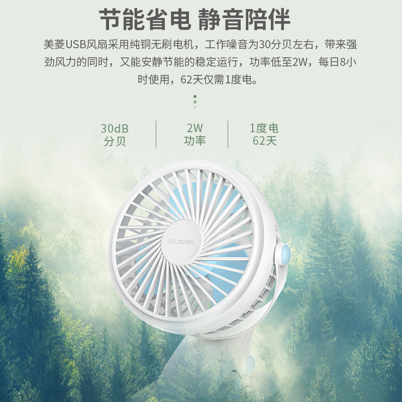 Meiling USB small fan mini home silent student dormitory bed clamp fan charging portable office