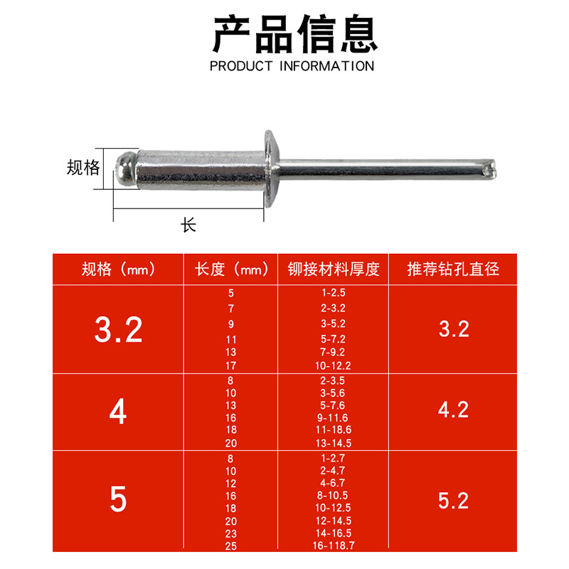 Pumping Core Aluminum Rivets 3 4 5x8 9 10 11 11 16 16 Aluminum mortise Ricker Rivet Gun Manual Nail Round Head