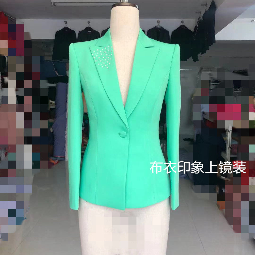 Cloth Impressionable to be a female presenter on a mirror Costume Announcer candidate for interview with a small suit QB897