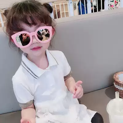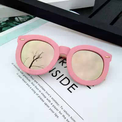 New children's pink reflective sunglasses Girls cute anti-UV sunglasses kids fashion glasses tide
