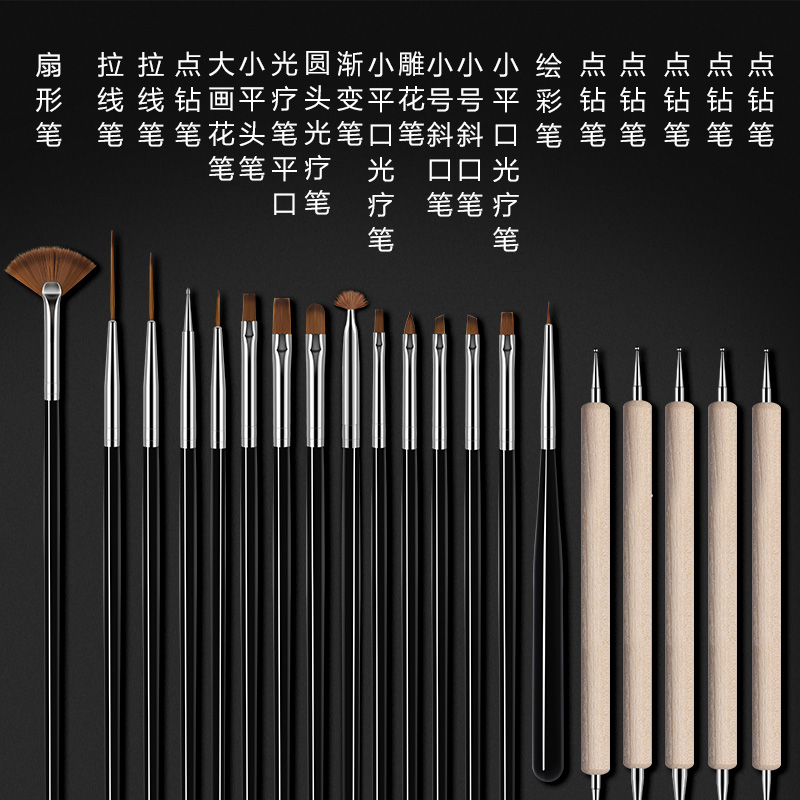 Nail art brush set full set of 20 points drill pull line color painting flower gradient phototherapy pen manicure beginner tools