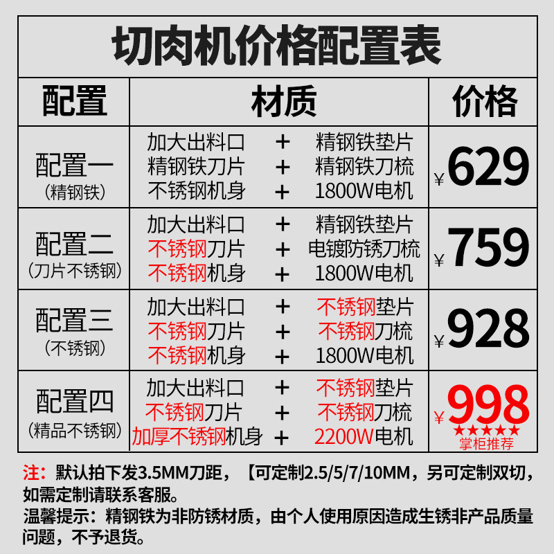 Configuration one Iron configuration (1800W) Configuration two Half steel (1800W) Configuration three Stainless steel (1800W) Configuration four Fine thickened stainless steel (2200W) hot recommended