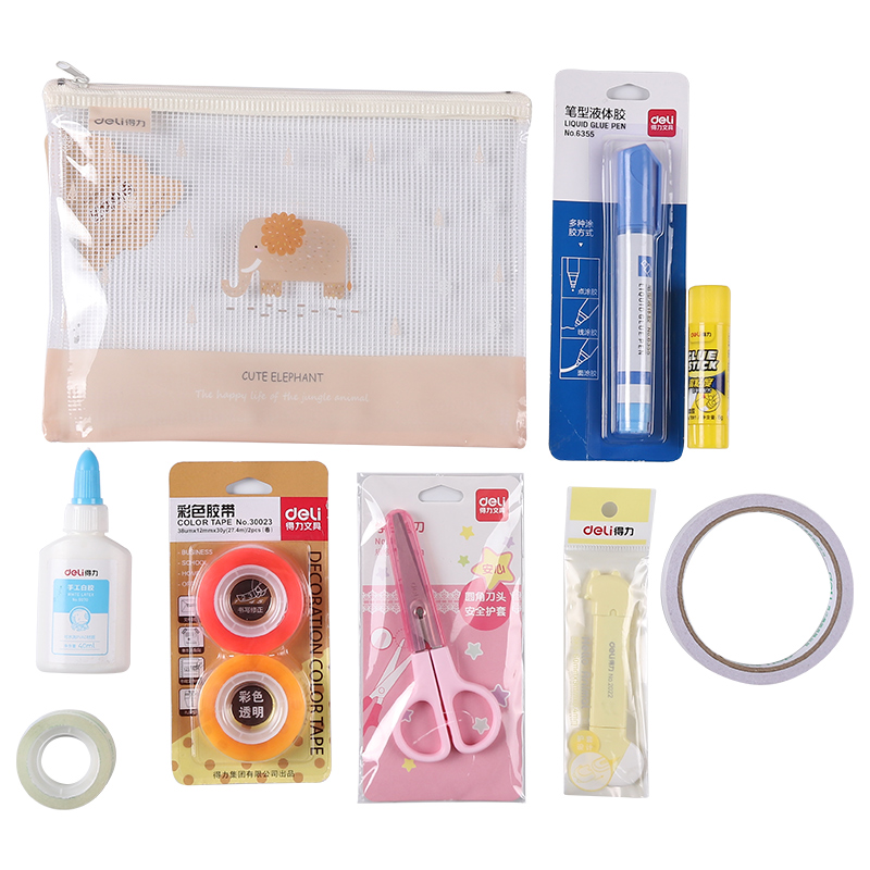 Able Students Handmade Tools Suit Safety Scissors Double-sided Elementary Students 1-2 Grade DIY Handmade Material Tools Whole Set Children Handmade Cut Paper Kits La Lace Bag 9 pieces
