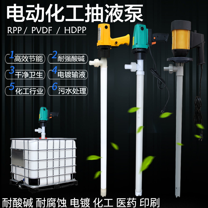 Electric chemical pumping liquid pump hydrochloric acid strong acid base RPP plastic oil barrel pump corrosion oil pumping pump PVDF