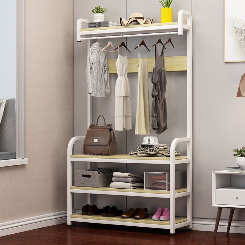 Coat rack Floor-to-ceiling bedroom steel wood shelf Living room Creative hanger Wall clothes rack Simple clothes rack