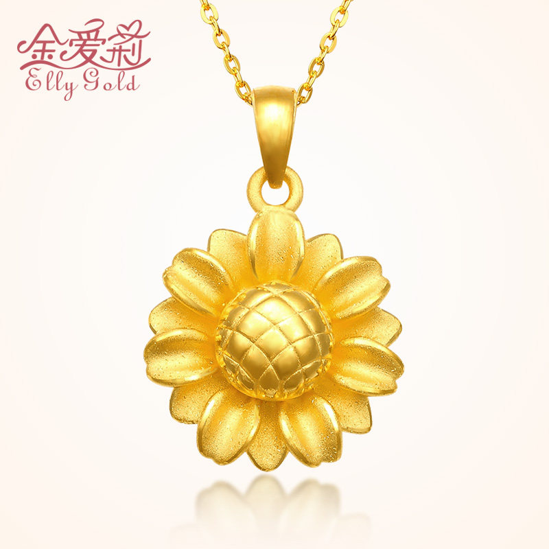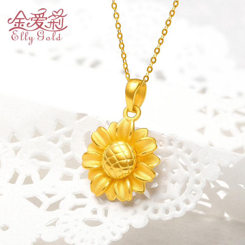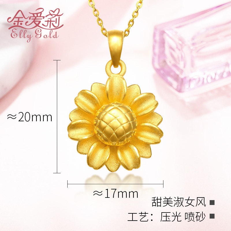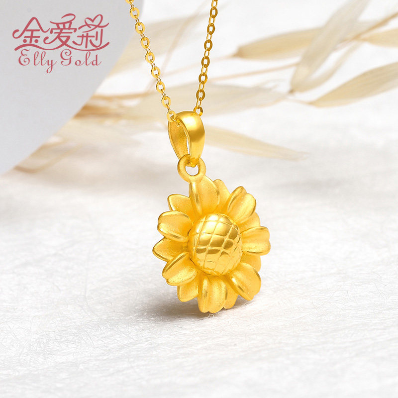 Gold pendant new small sun flower fashion women 3D hard gold 999 pure gold to the sun and the birth of sunflower necklace pendant