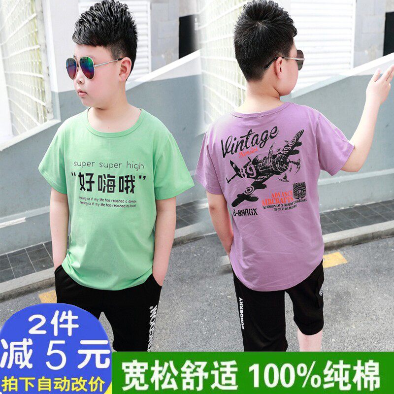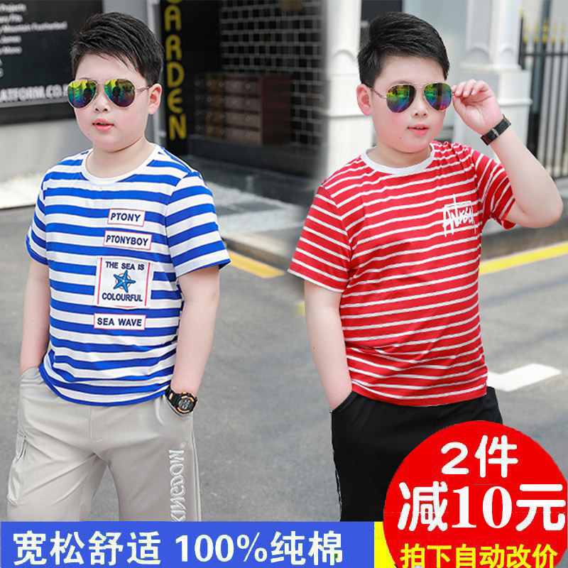 Fat children's summer clothes, boys' short-sleeved t-shirt, large size, medium and large children's short t plus fat plus fat children's thin T-shirt cotton loose