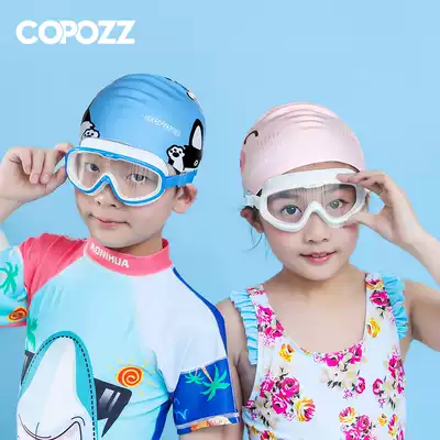 COPOZZ children's swimming cap boys and girls waterproof swimming ear protection comfortable not head silicone long hair cute Korea