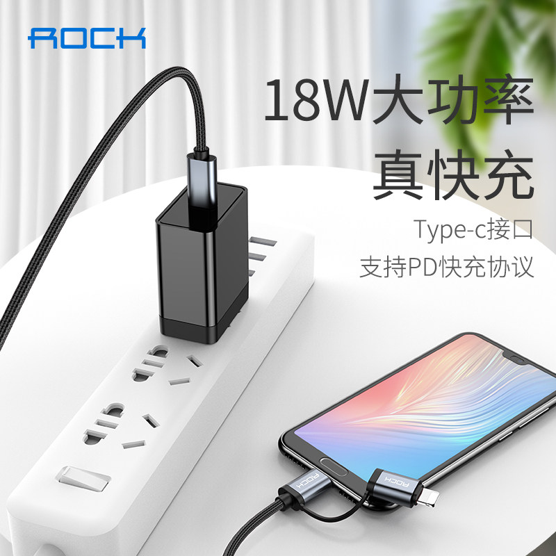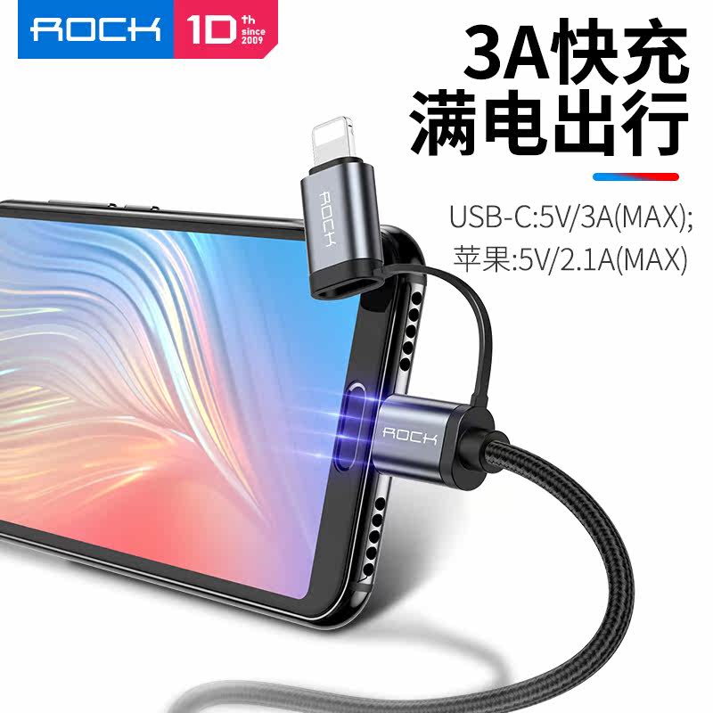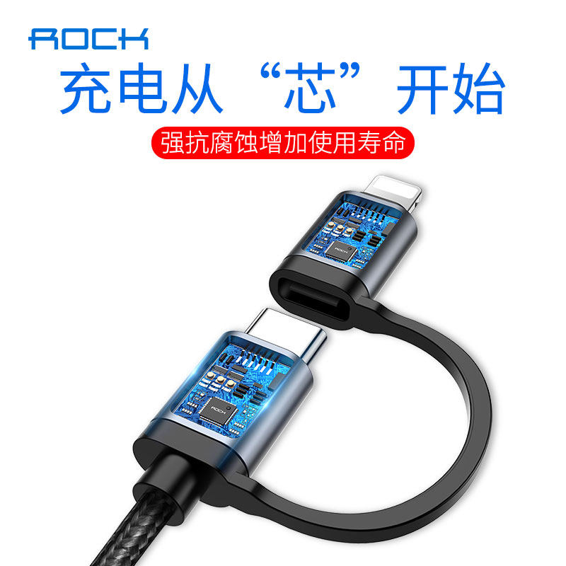 ROCK double head type-C data line USB-C turn suitable for Apple lightning connector pd fast charging line
