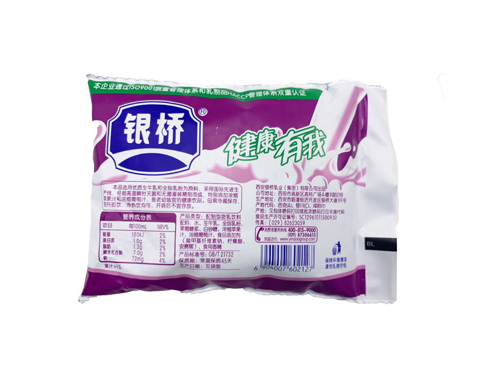 Shaanxi Tersan Silver Bridge Sour Milk Drink Grape Taste 200ml * 16 Packs Yogurt Whole Box Breakfast Portable Packaging