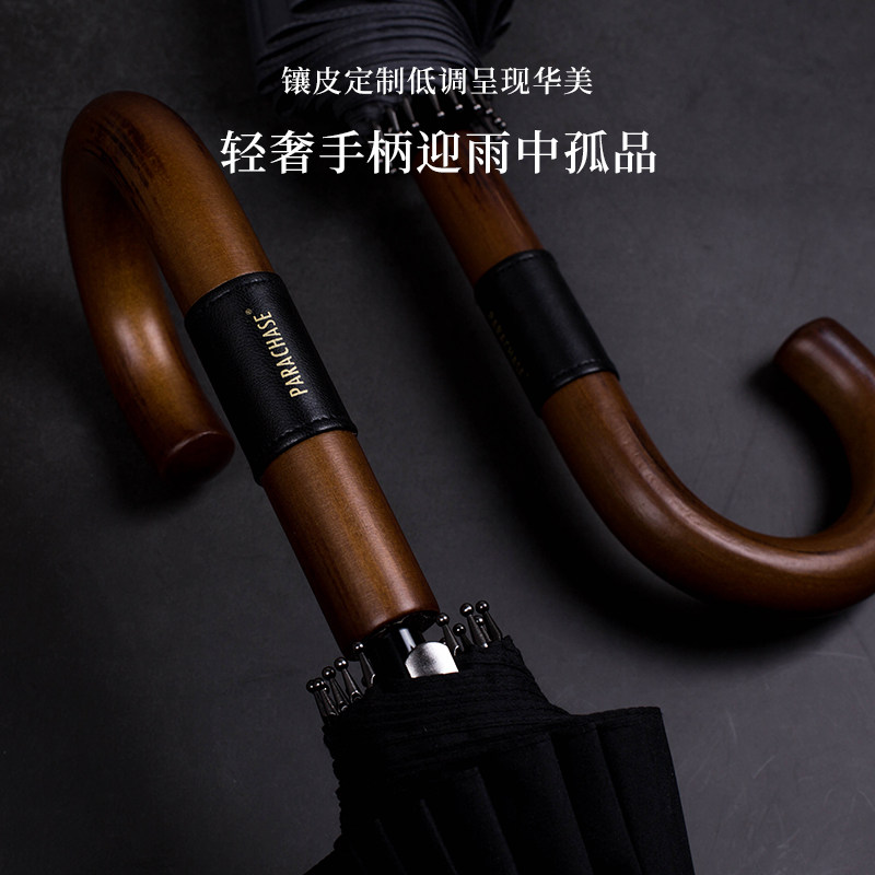16 Bone large yard storm and rainstorm double umbrella reinforced strong bending of vintage straight parachute men's long umbrella