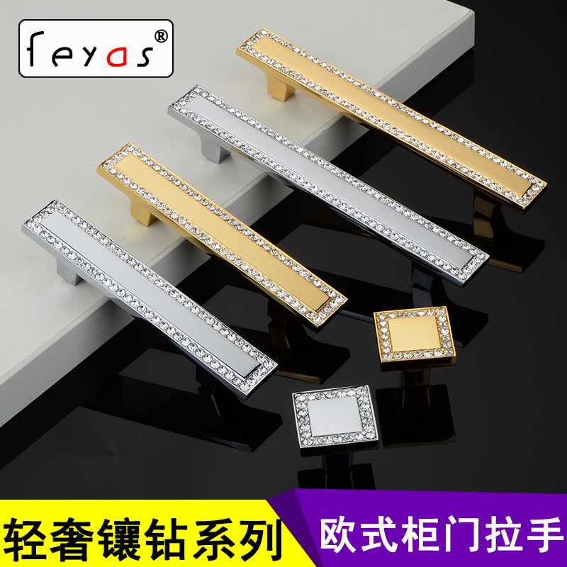 Crystal Wardrobe Door Handle Eurostyle Golden Upholic Luxury Overall Closet Door Wine Cabinet Handle Cabinet Drawer diamond Single-hole