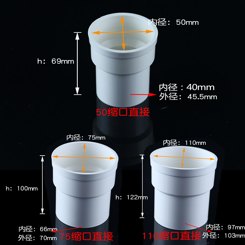 pvc50 75110160 beam opening direct water pipe extension connector rain joint size head heterodiameter interpolation straight