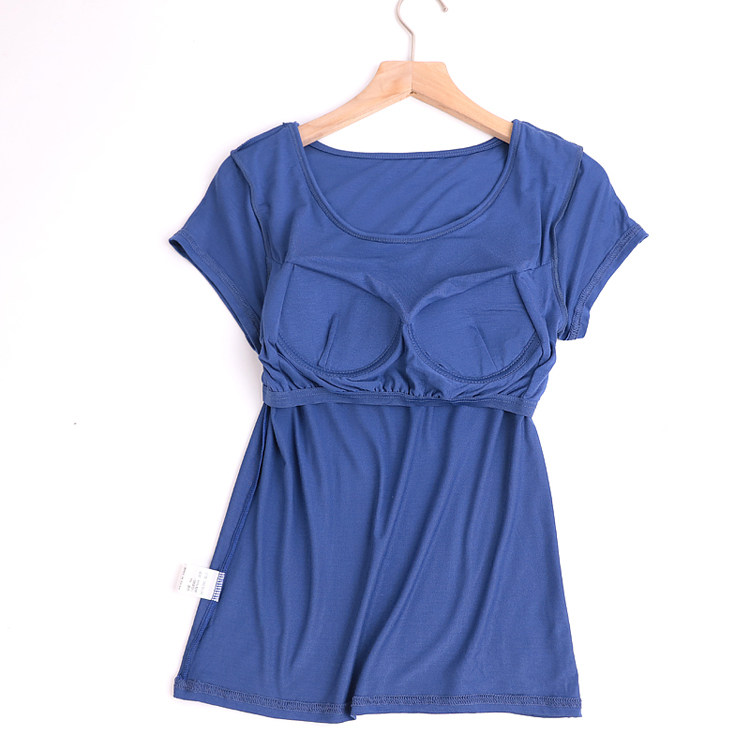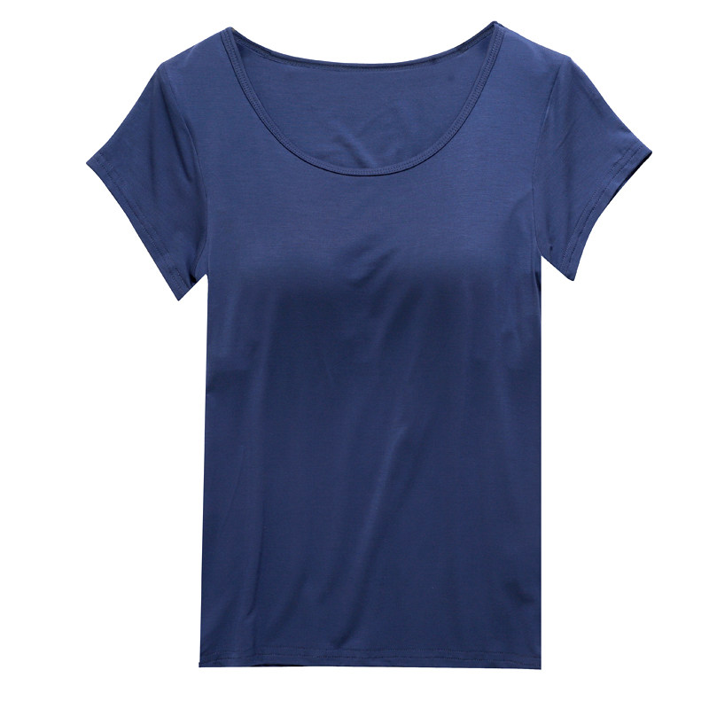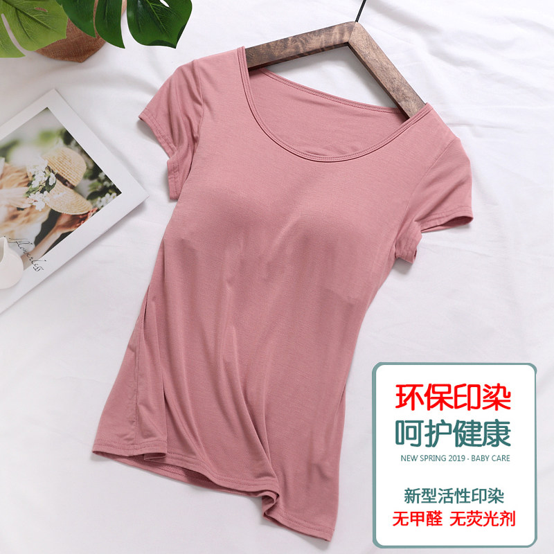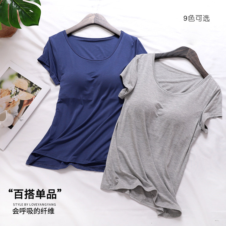 Modale with chest cushion short sleeve T-shirt sleepwear woman summer loose bra-free bra-free undershirt big code sports blouses-Taobao