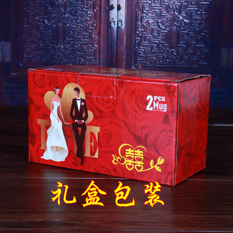A pair of ceramic cups for double happiness A pair of ceramic cups for a romantic event A pair of ceramic cups for a happy marriage A pair of ceramic cups Double happiness for toothbrushes
