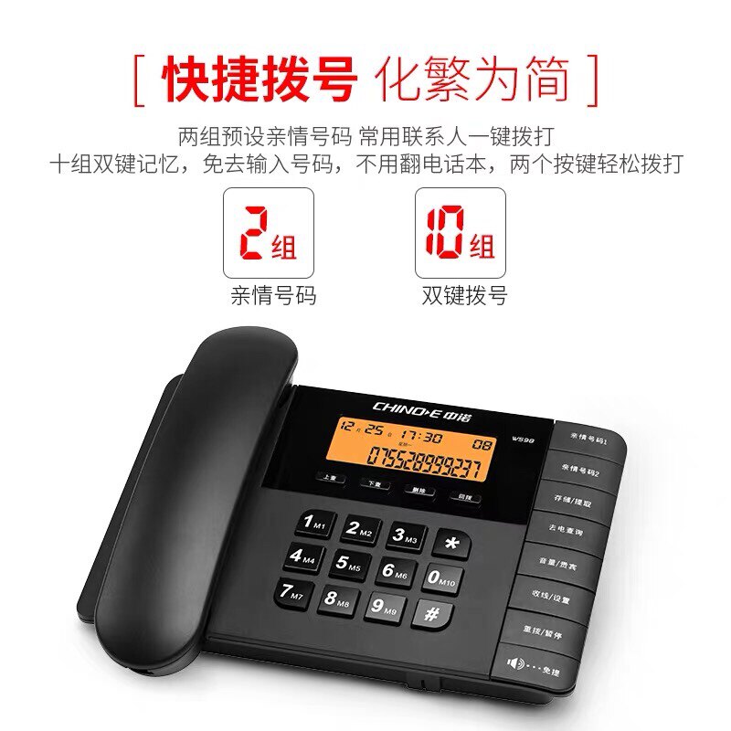 Zhongnuo W598 telephone landline home wired wired telephone office business fashion fixed telephone screen backlight