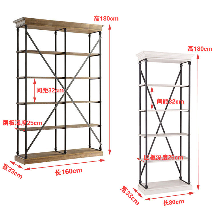 American wrought iron bookshelf kitchen solid wood storage rack living room floor multi-layer rack industrial style creative retro rack