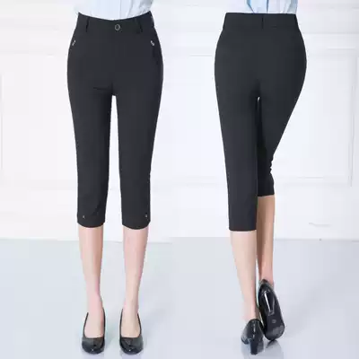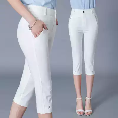 Summer thin women's pants cotton and linen seven-point casual pants white middle-aged mother pants high waist straight breathable linen pants