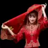 Wedding red hijab Bride red lace wedding hijab headscarf Chinese Xiuhe dress Hiker hijab gauze towel translucent