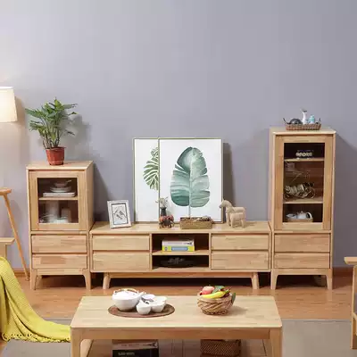Nordic all solid wood TV cabinet combination log modern simple small house economy living room side cabinet living room Japanese style