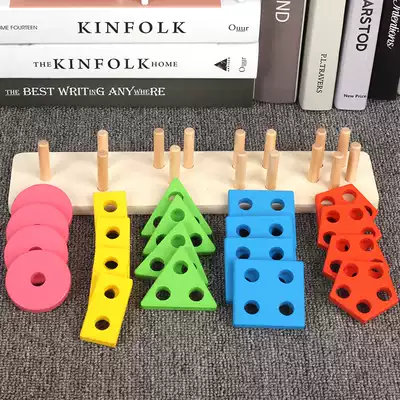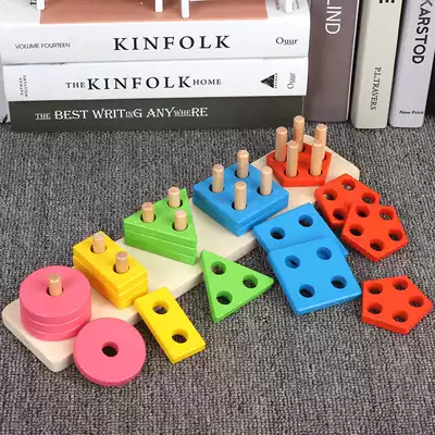Baby shape matching toy Four sets of columns Toddler boy 5 building blocks Children's early education puzzle 0-1-2-3 years old