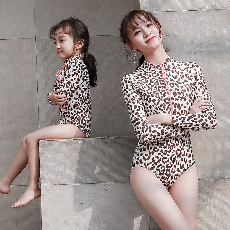 New ins parent-child swimsuit one-piece BAO WEN girl long sleeve sunscreen quick-dry holiday swimsuit mother and daughter swimsuit
