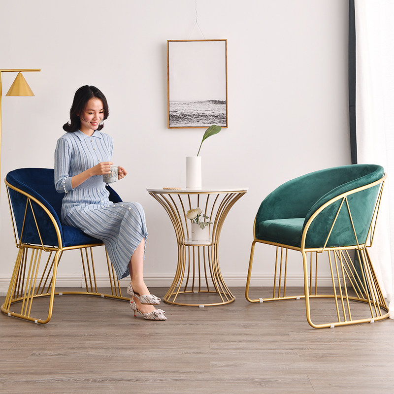 Two sofas big table color custom consultation customer service two pieces sofa small table ink green single chair pink single chair A with white marble-single table B with black marble-single table