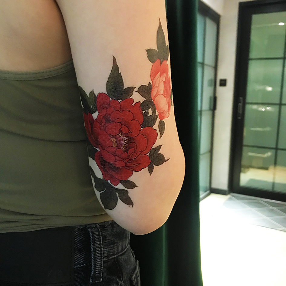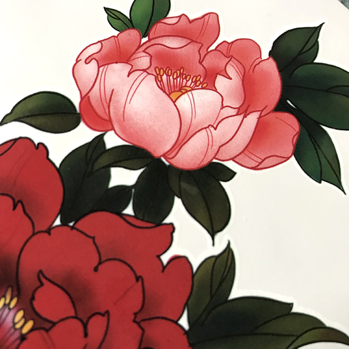 zingtattoo original single Japanese-style Japanese Ukiyo-E tattoo stickers Peony waterproof female long-lasting flower arm
