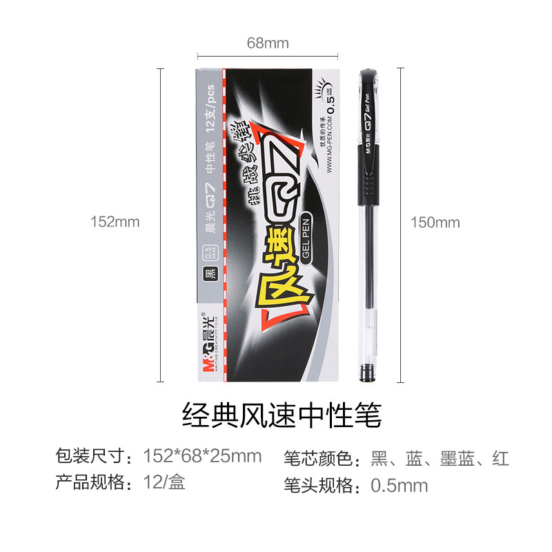Morning light stationery carbon black middle sex pen 0 5mmQ7 student with subwarhead exam waterborne pen business office sign pen red blue ink blue doctor prescription pen wholesale