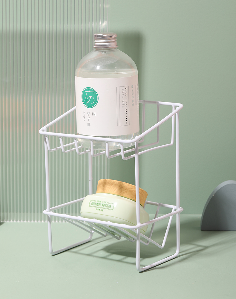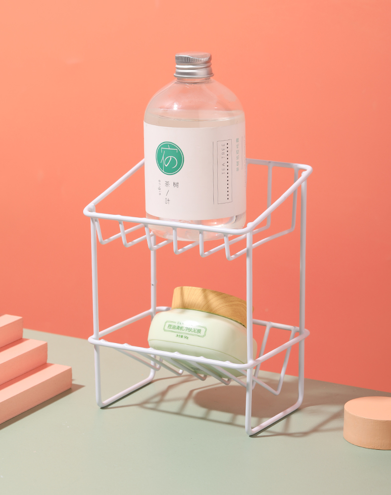 2167 mini double iron rack soap rack soap storage rack drain steel wire basket rice wood Japanese home