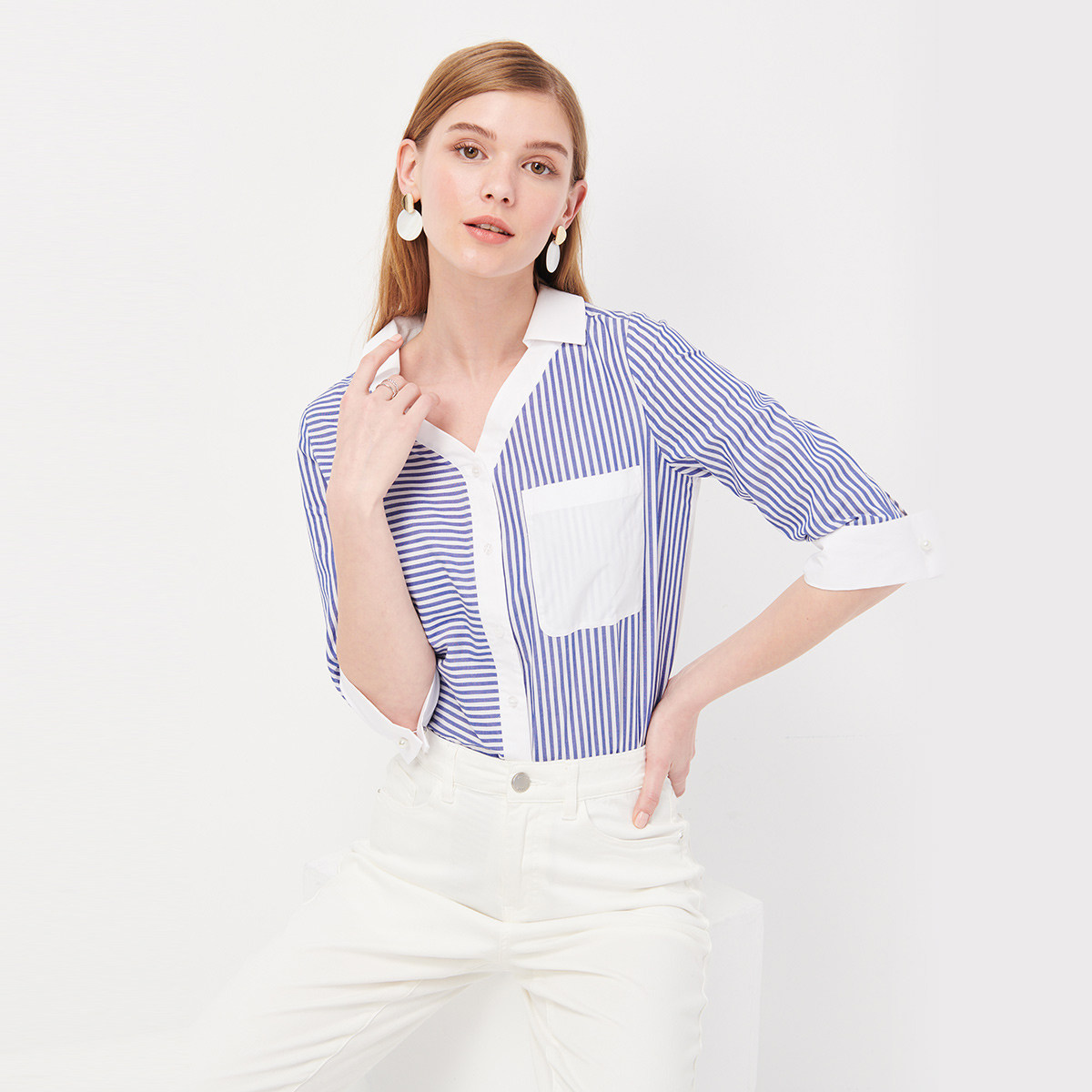 PRICH striped shirt summer new design sense top loose cotton ladies shirt PRBA92510Q