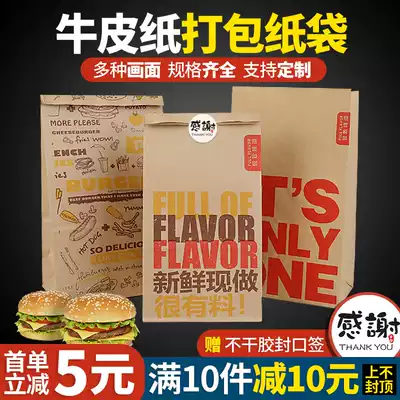 Kraft paper bag food bag square bottom packaging bag disposable hamburger packing paper bag delivery bag custom logo