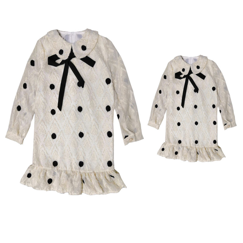 Parent-child dress 2022 new trendy spring and autumn mother-daughter dress Korean version of net red wave point skirt long-sleeved lotus leaf edge girls dress