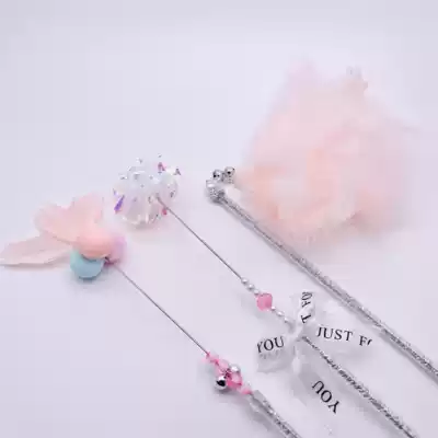 Funny cat stick Big feather bell Fairy stick Bite-resistant paper tassel molar hair ball long pole cat toy self-hey