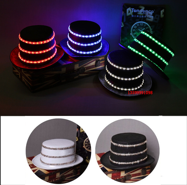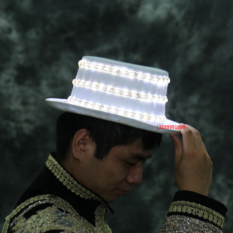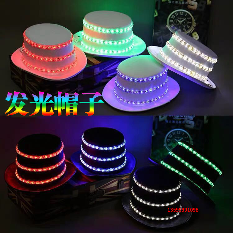 Nightclub nightclub hat nightclub black cap glow show clothing bar laser glow glasses gloves
