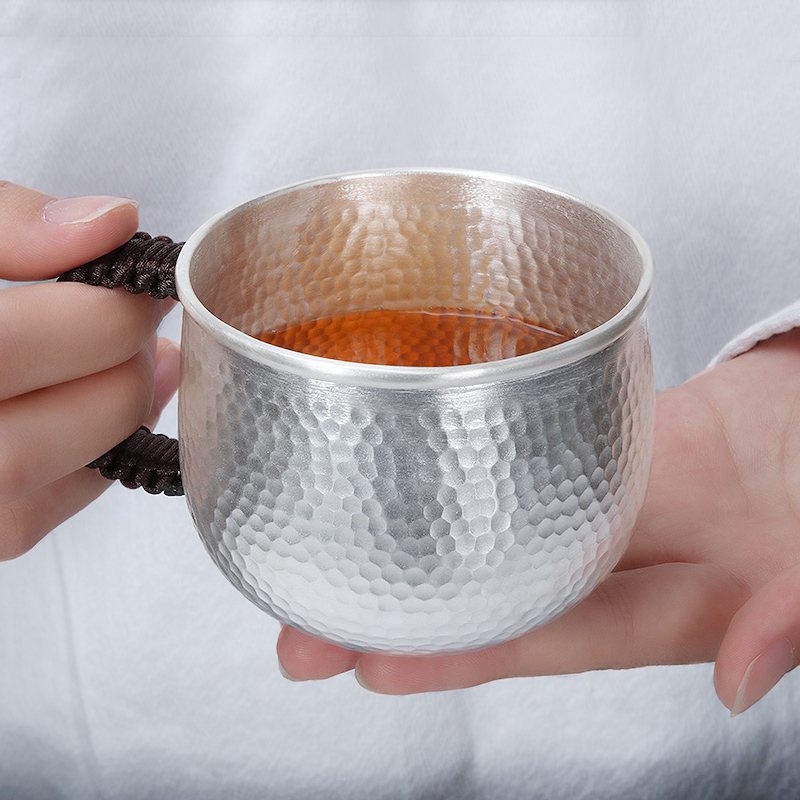 Tai'an Silver Silver 999 Mug Sterling Silver Handmade Hammer Coffee Cup Water Cup Large Capacity Tea Cup