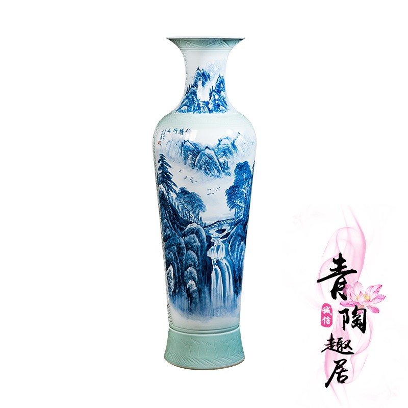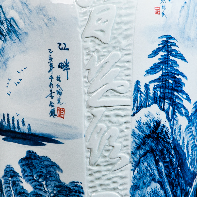 Jingdezhen pottery carving hand-painted blue and white porcelain floor-to-ceiling large vase living room hotel decoration home decoration