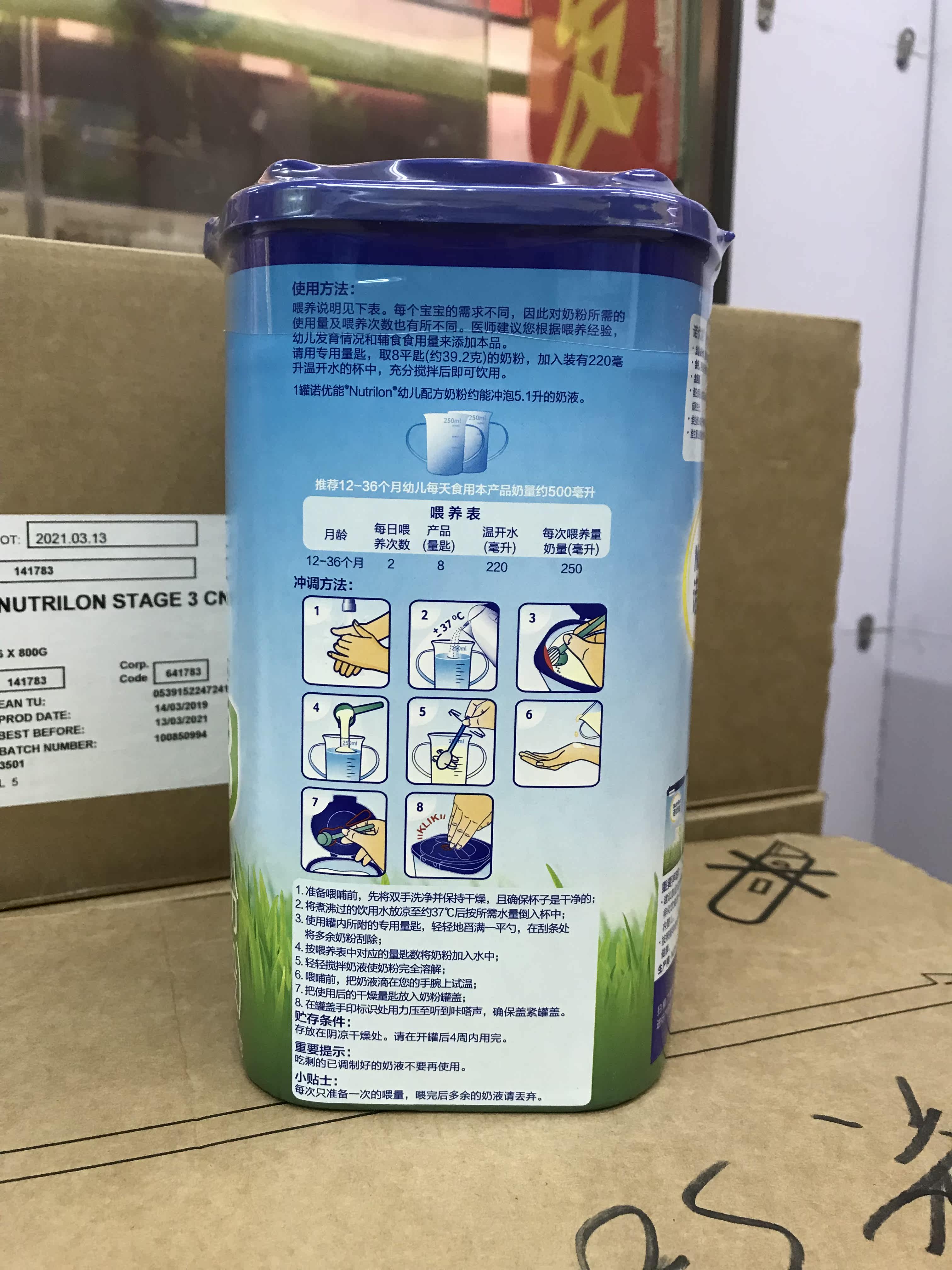 On March 2, 21, 2 cans of Niulan Nuoyuneng Section 3, 12-36, 800 grams of formula milk powder were imported