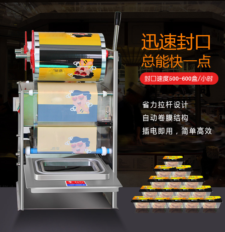 Fully automatic commercial takeaway black duck fresh-keeping fast food box milk tea hot pot cup sealing machine cooked food lo-mei packing machine