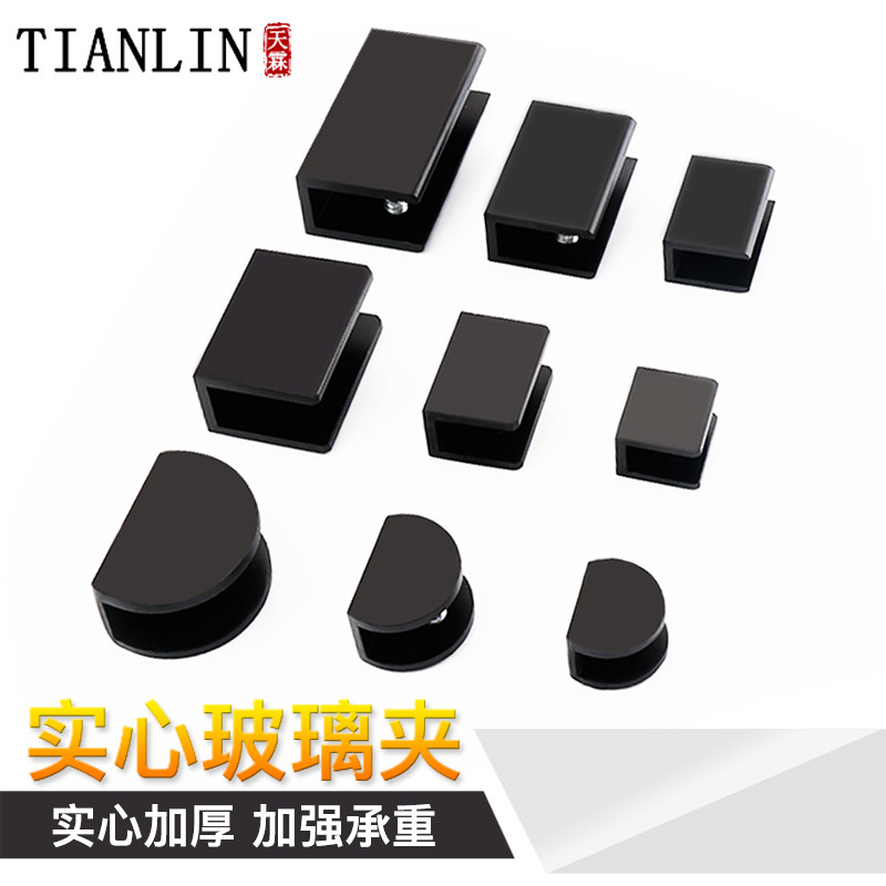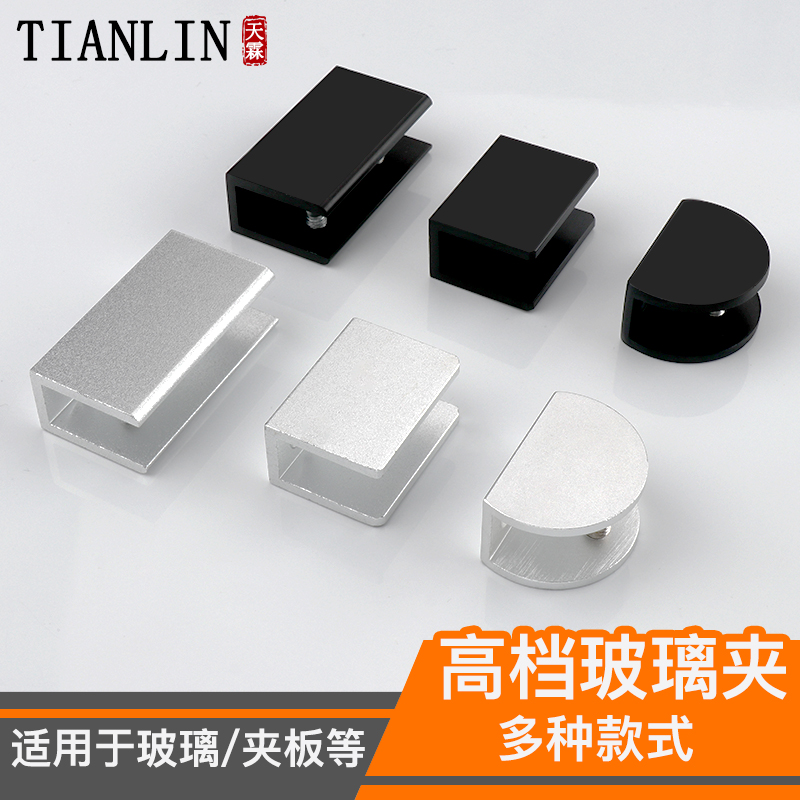 Black glass clip Punch-free space aluminum glass clip fixed accessory card Glass shelf separator shelf clip
