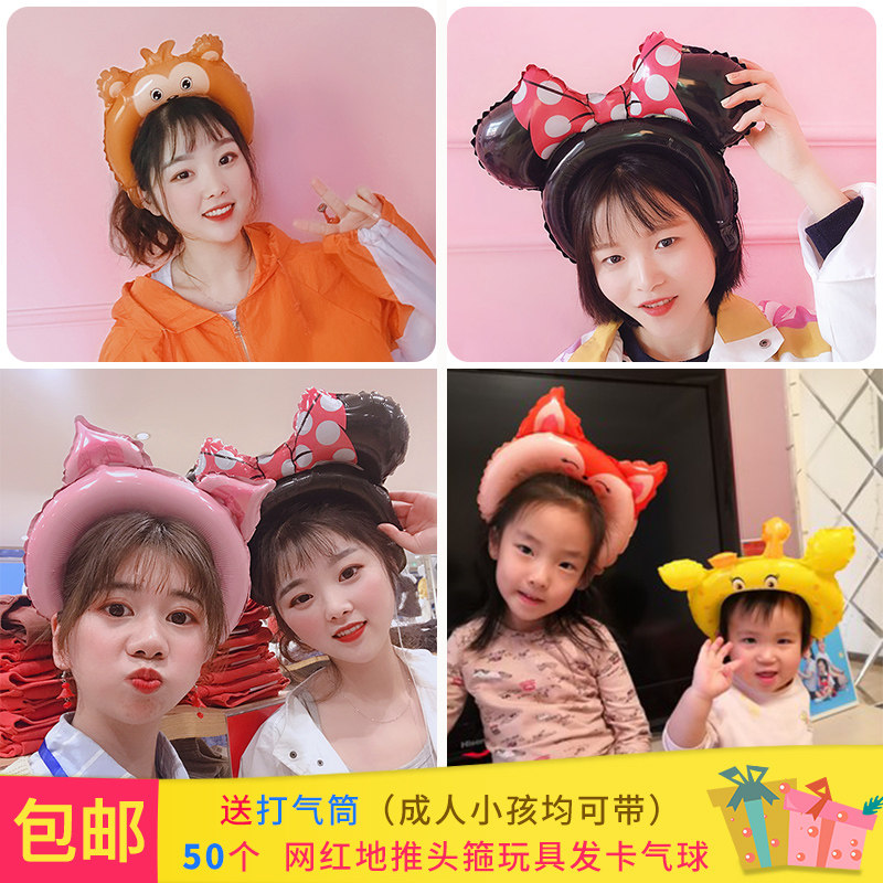 100 headband balloons with multiple mixes of hair + pump (cartoon combination of 50 sets) send drag rod + pump 50 little yellow duck headband balloons + pump pink bear headdress balloon 50 + pump 50 super pilot short handheld + pump blue bear headdress balloon 50 + pump pig headdress balloon 50 + pump