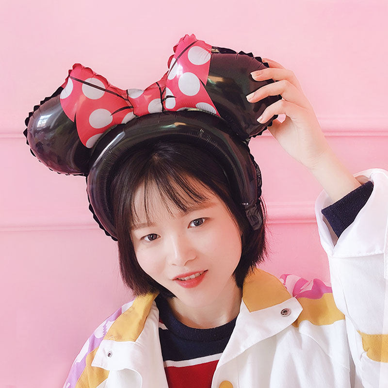 Children's birthday decorative balloon holding stick cartoon hair hoop powder suction gift scene arrangement of balloons with hand gift