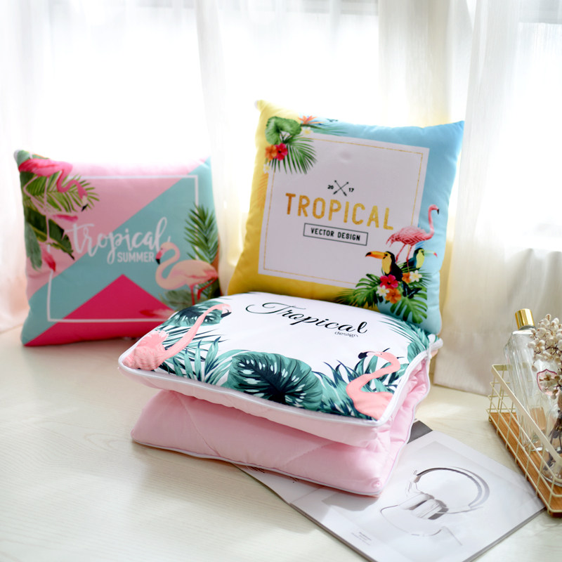 Nordic style flamingo plush sofa car pillow small quilt dual-use nap pillow cute pillow ins