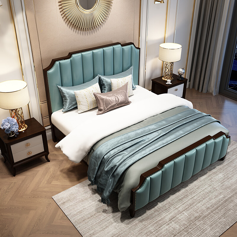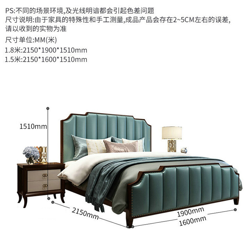 American style solid wood bed 1.8 meters, master bedroom big bed, double bed, modern simple light luxury princess bed, wedding bed 1.5 leather bed