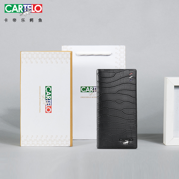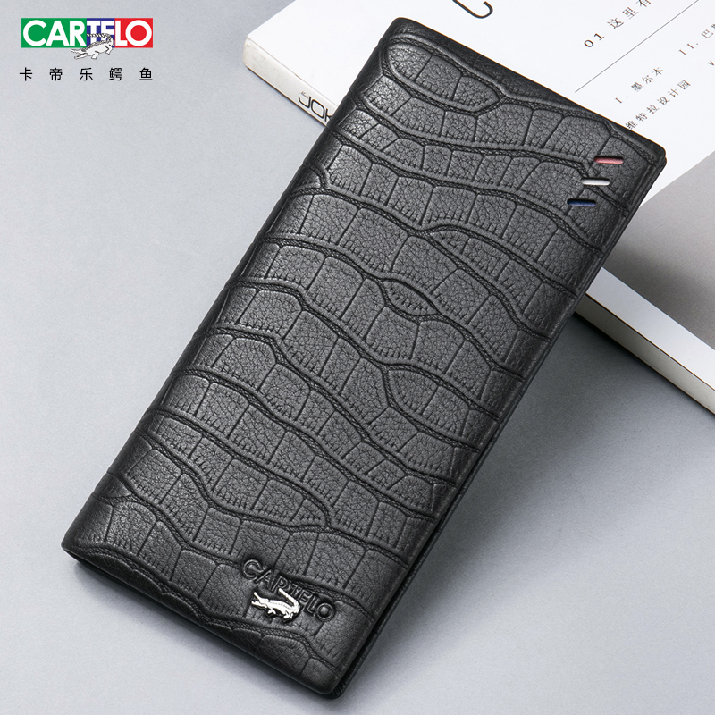 CARTELO Cardy Crocodile Men's wallet Long version of genuine leather Youth leather clip ultra-thin soft head laminated cow leather wallet