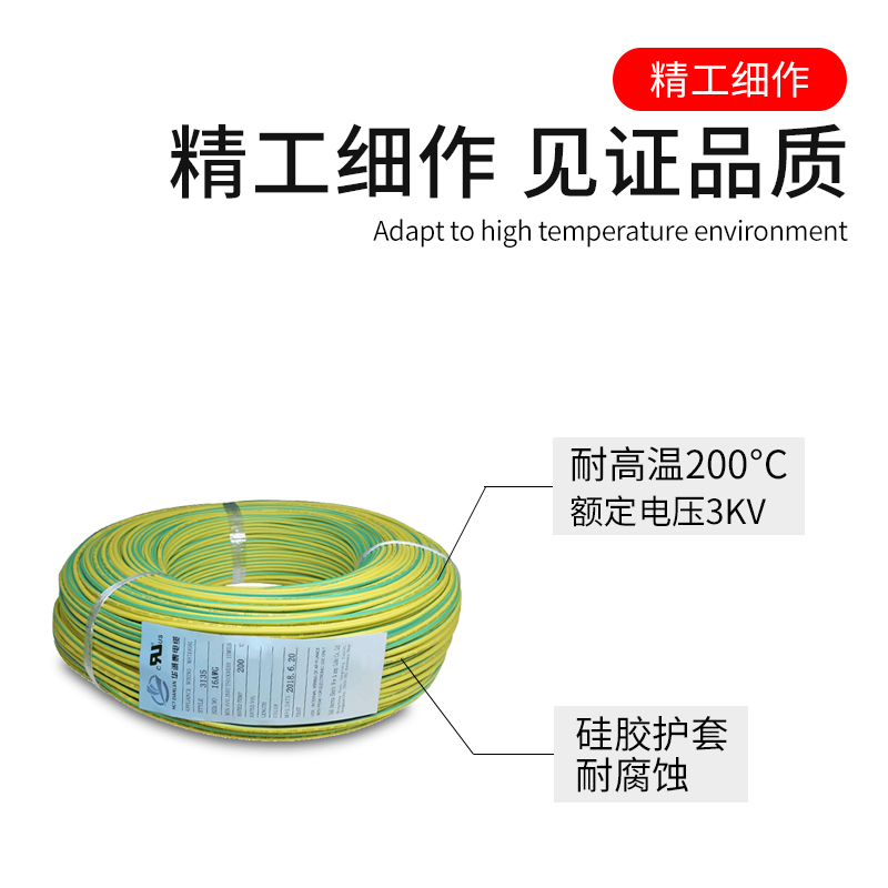 Silicone wire grounding wire American anti-static wire ultra soft and high temperature resistant UL3135 16 18 20AWG Yellow-green bicolor